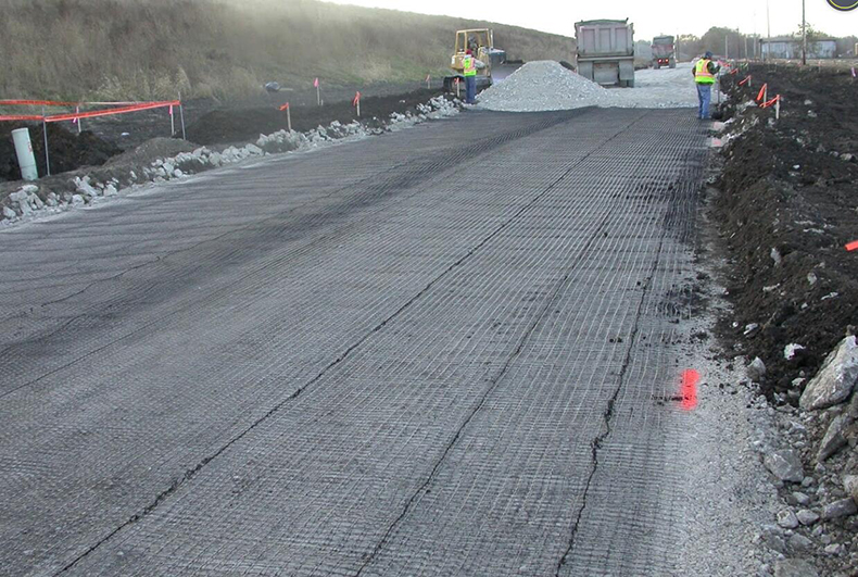 产品有强度高、伸长率低、耐高温、模量高、重量轻、韧性好、耐腐蚀、寿命长等特点,可广泛应用于旧的水泥路面、机场跑道的维修、堤坝、河岸、边坡防护、道桥路面增强处理等工程领域,可给路面增强、补强,防止路面车辙疲劳裂纹,热冷伸缩裂纹和下面的反射裂纹,并能将路面承载应力分散,延长路面使用寿命,高抗拉强度低延伸率,无长期蠕变,物理化学稳定性好,热稳定性好,抗疲劳开裂,耐高温车辙,抗低温缩裂,延缓减少反射裂缝。